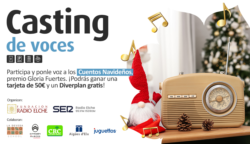 El Centro Comercial L’Aljub, gestionado por CBRE, patrocina y colabora un año más con el Concurso radiofónico de Cuentos Navideños ‘Premio Gloria Fuertes’. Este año el certamen celebra su LXI edición y, como es habitual, está organizado por la Fundación Radio Elche. Por segundo año consecutivo, el casting de voces se abre a la participación ciudadana. Bajo el lema ‘¿Tienes una voz capaz de transmitir la ilusión de la Navidad?’. La convocatoria invita a niños, jóvenes y adultos a formar parte de esta experiencia radiofónica única, narrando los cuentos ganadores del concurso y emocionando a miles de oyentes durante las fiestas.