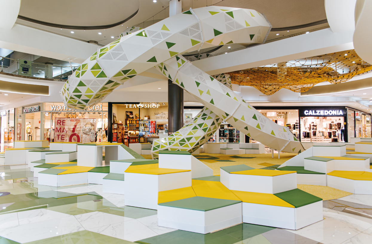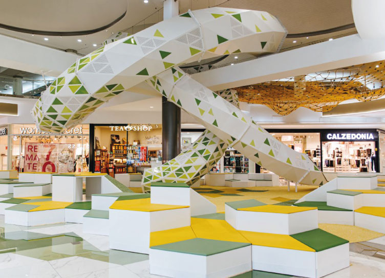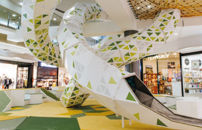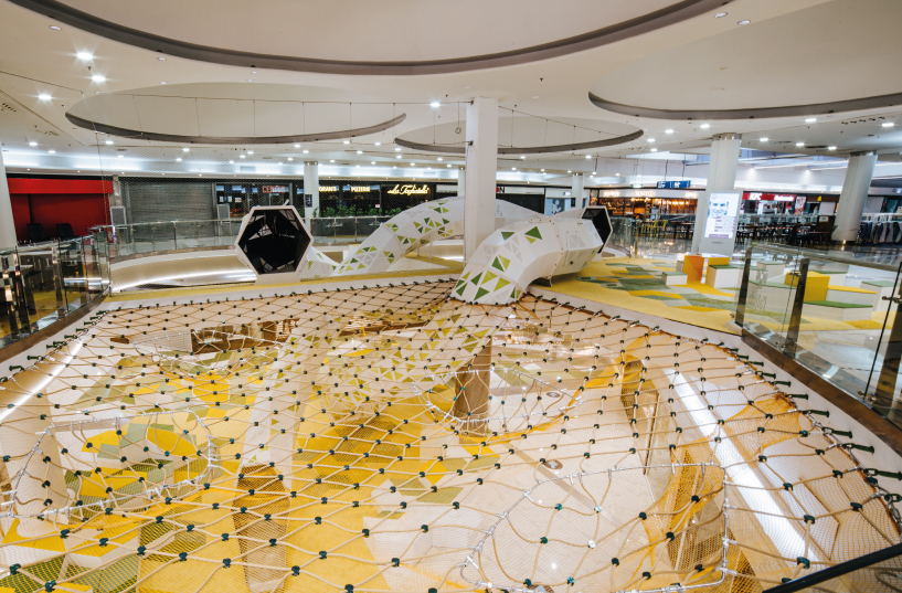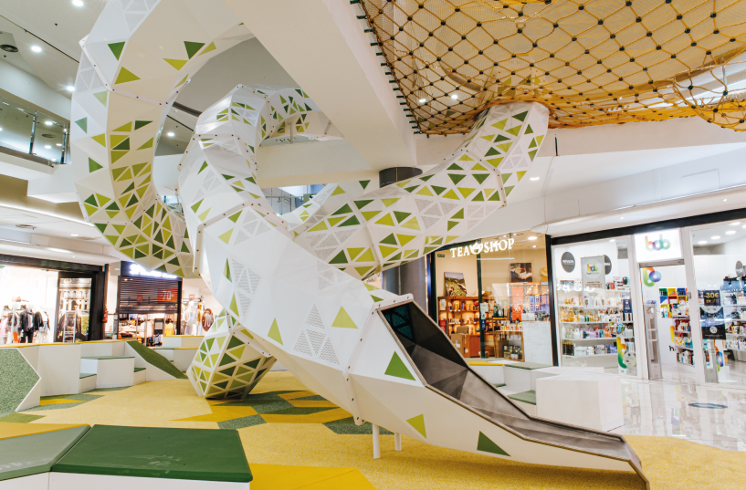 Está ubicado entre las dos plantas del centro comercial, en la plaza central y ocupa una superficie de más de 100 m2 y una altura de más de 6 metros. Este nuevo espacio cuenta con dos grandes loopsque incluye un tobogán de más de 4 metros, una zona de escalada, una zona de juegos múltiples y un túnel de acceso a una divertida red.